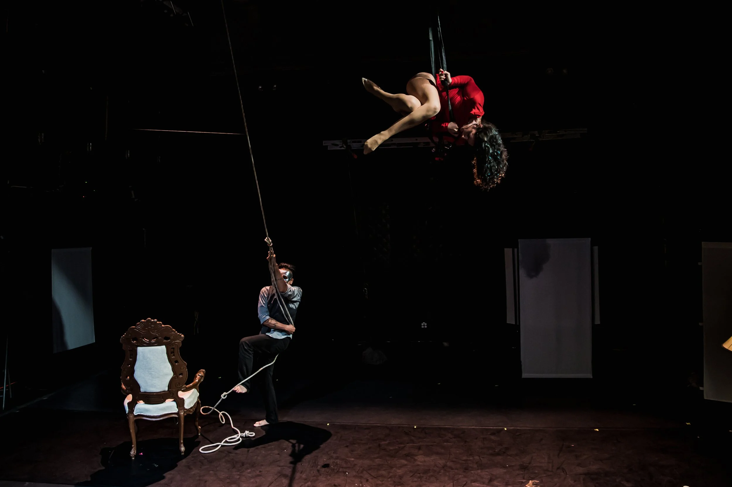 Since 2017 we’ve been weaving aerial dance and storytelling with counterweight rigging designs. We make our own work, and we collaborate with performance makers seeking to integrate aerial into their projects.